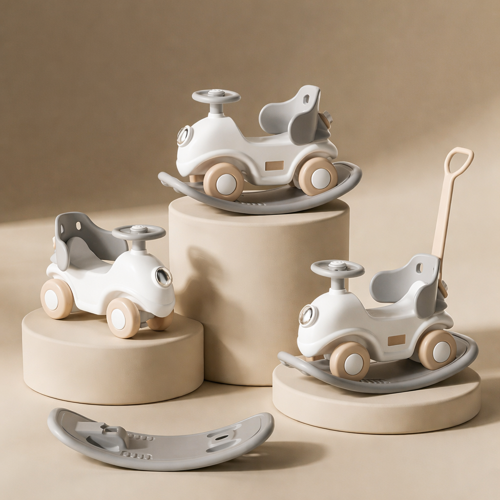 Această mașinuță multifuncțională 3 în 1 pentru copii este concepută pentru a crește odată cu cel mic, oferind mai multe moduri de joacă într-un singur produs: mașinuță de împins, ride-on și balansoar. Cu un design modern, culori neutre și forme ergonomice, este ideală pentru copiii aflați la începutul explorării mișcării.